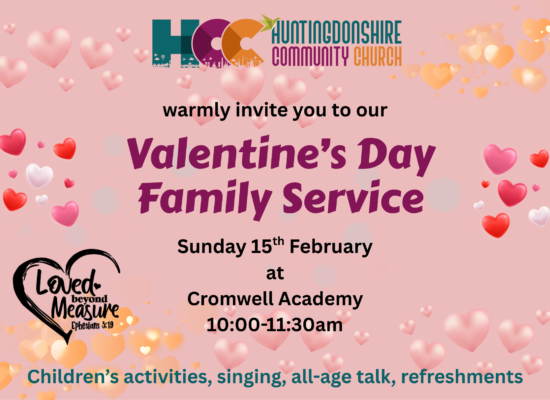 This Sunday 15th February we are having a family Valentines-themed service for all ages, you would be so welcome to join us!