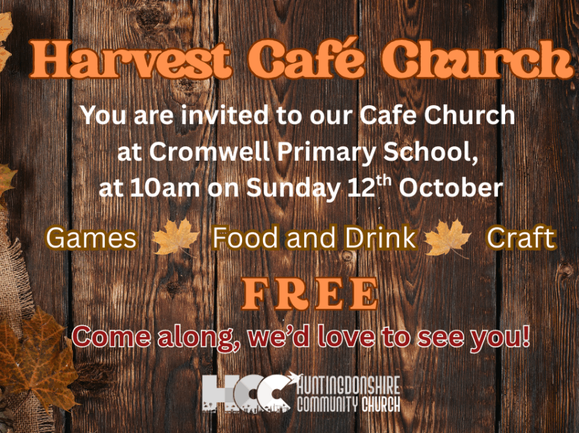 Come and join us at our Harvest Cafe Church on Sunday 12th October. Family-friendly, and open to all. Those new to HCC will be especially welcome!